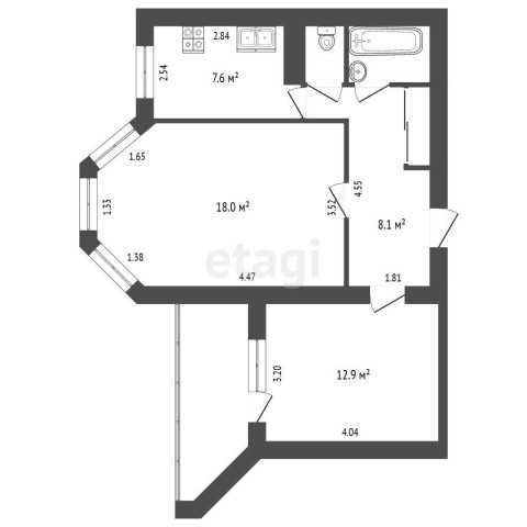 Купить 2х комнатную квартиру, 15/16 эт., 52 м²