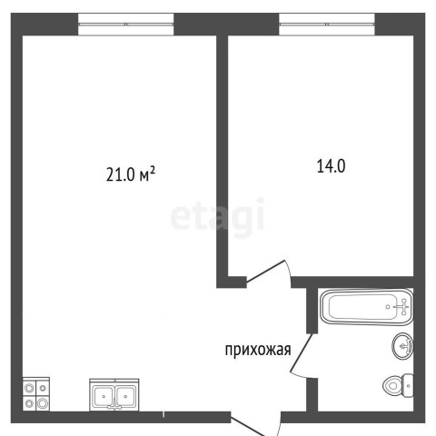 Купить 2х комнатную квартиру, 11/14 эт., 43.7 м²