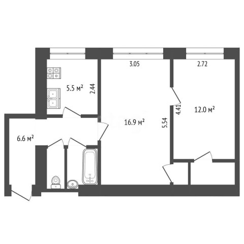 Купить 2х комнатную квартиру, 1/5 эт., 47.2 м²