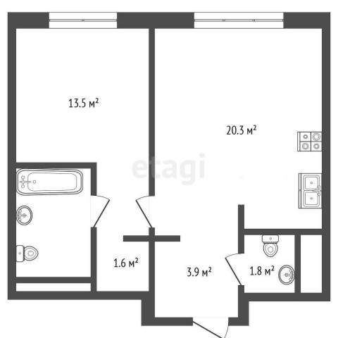 Жилище выделяется продуманным и актуальным дизайном: просторная кухня, соединенная с гостиной, становится центром семейного общения, в то время как изолированная спальня обеспечивает приватность, предлагая гардеробную и собственный санузел.