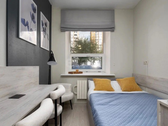 Уютная студия в доме с высокими потолками и прочными стенами ждет своих новых владельцев.